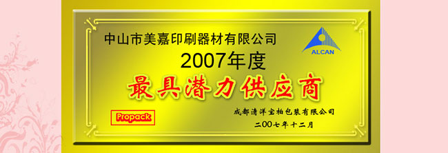 In December 2007, the chengdu realisation treasure parker won the ALCAN group company 2007 annual "the most potential supplier award"