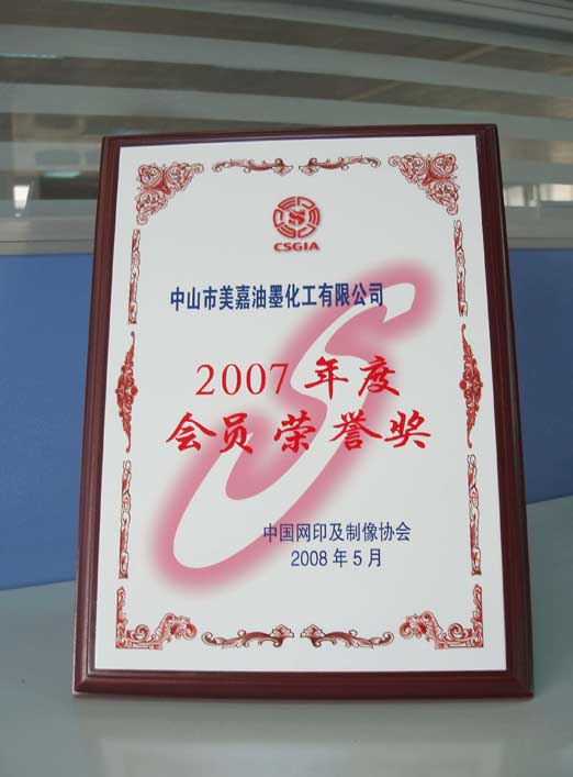 In May 2008, a total to hangzhou to participate in the Chinese printing and like association meeting. The conference for the company issued the "2007 annual member honor, so that the recognition of beauty jia company in society and contribution in the printing ink industry.