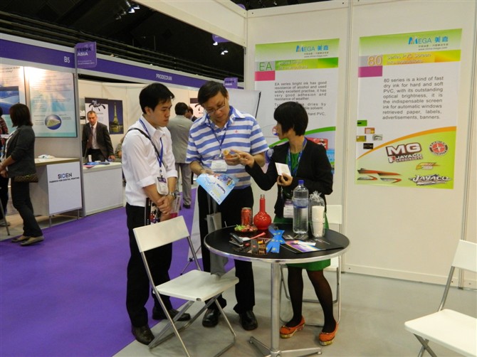 2011年10月,我們參加了FESPA于新加坡舉辦的國(guó)際絲網(wǎng)印刷展會(huì),展會(huì)上精美的印件,特別是新產(chǎn)品水性噴漆及熱轉(zhuǎn)印油墨吸引了很多買(mǎi)家前來(lái)咨詢產(chǎn)品和技術(shù)信息,為美嘉進(jìn)一步走向世界奠定了良好的基礎(chǔ)。